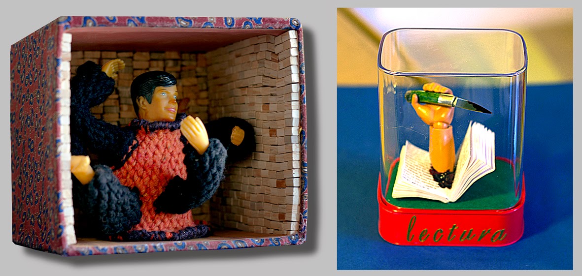| Obras de Zoto. A la izquierda, No se culpe a nadie. A la derecha, Lecturas. Técnica mixta. |