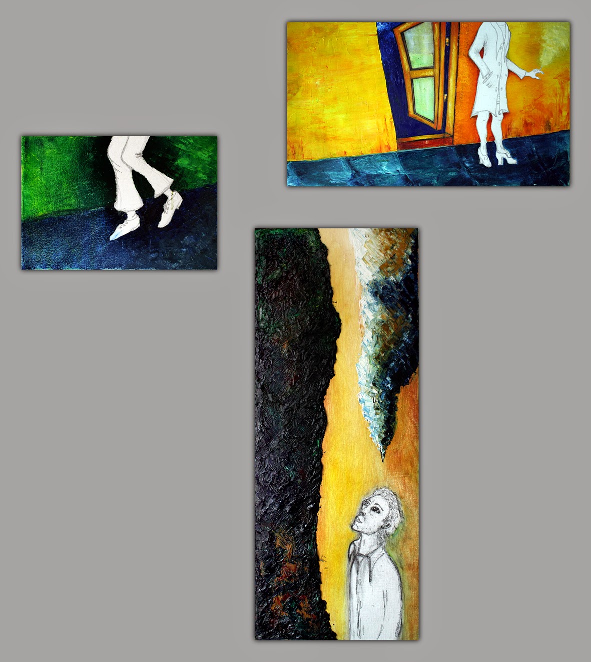 | Obras de Maite Lem. La cita. I/ Lucas. II/ Margarita. III/ Osvaldo. Óleo. |
